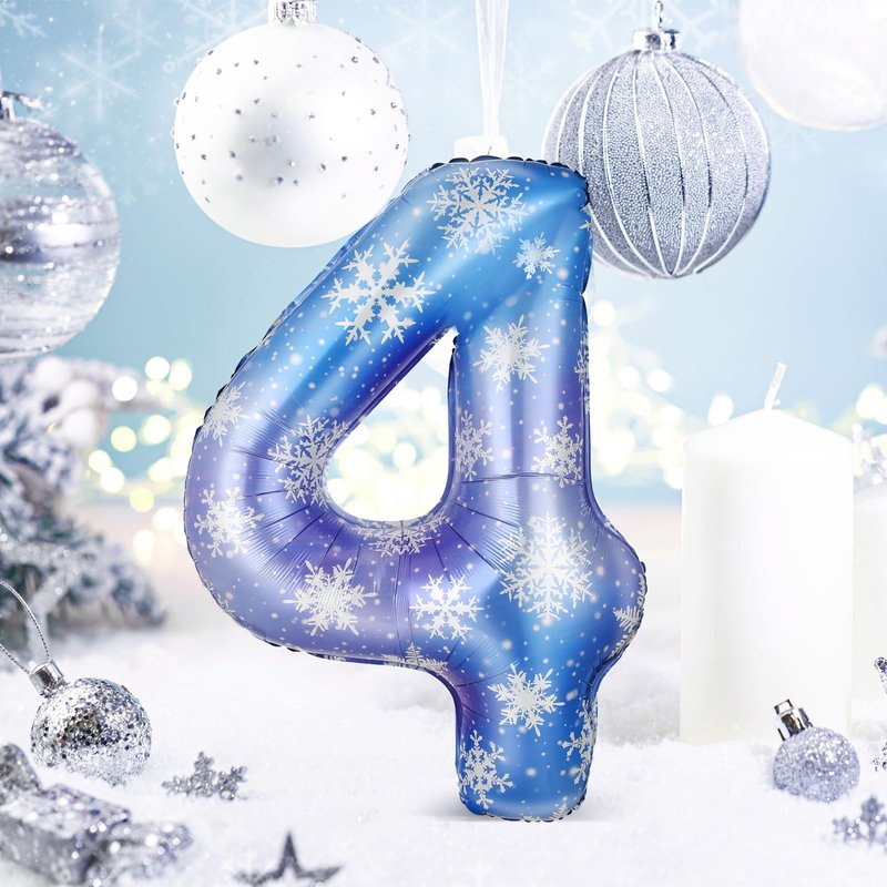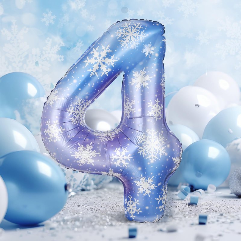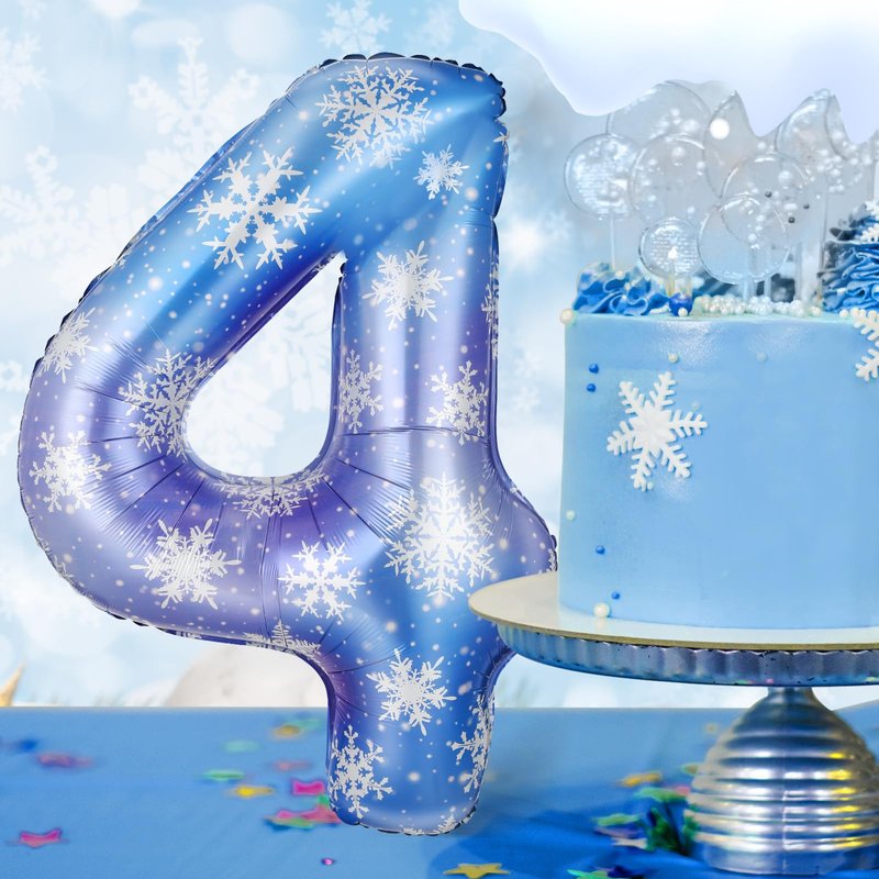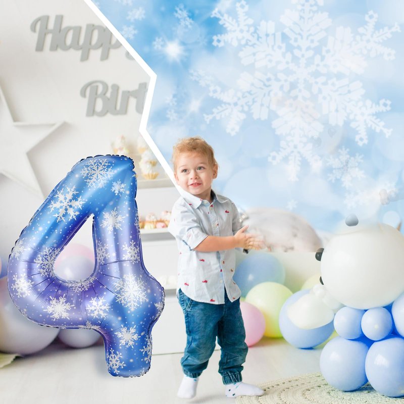 Lunmon 40 Inch Blue Snowflake Balloon Number 3 Snowflake Balloon Snowflake Birthday Balloons Decorations for Girls Birthday Snowflake Themed Party Supplies Winter Party Decorations(Number 4)