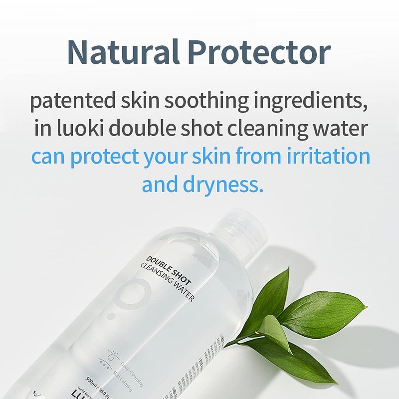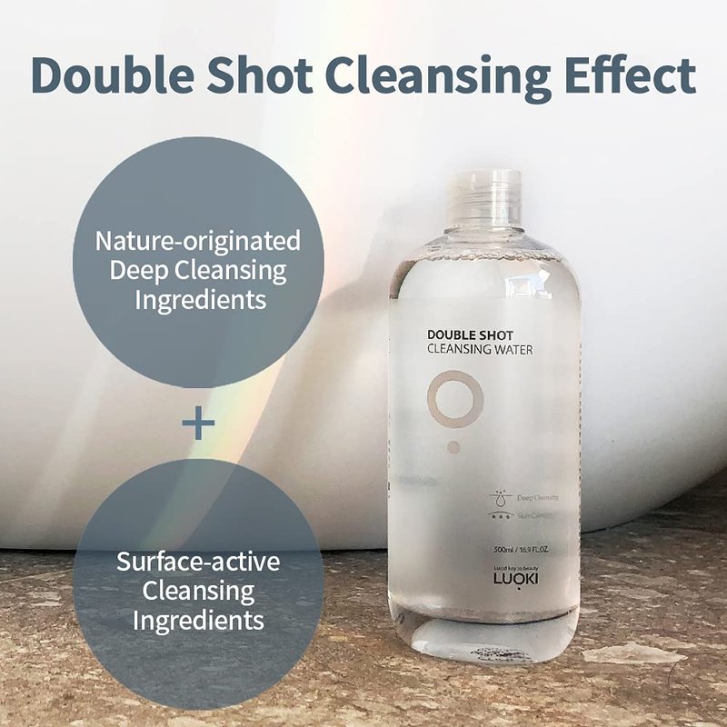 luoki Double Shot Cleansing Water 500ml (16.9 fl oz) - Hypoallergenic Deep Clean Micellar Cleansing Water and Makeup Remover… (16.9 Fl Oz(Pack of 1))
