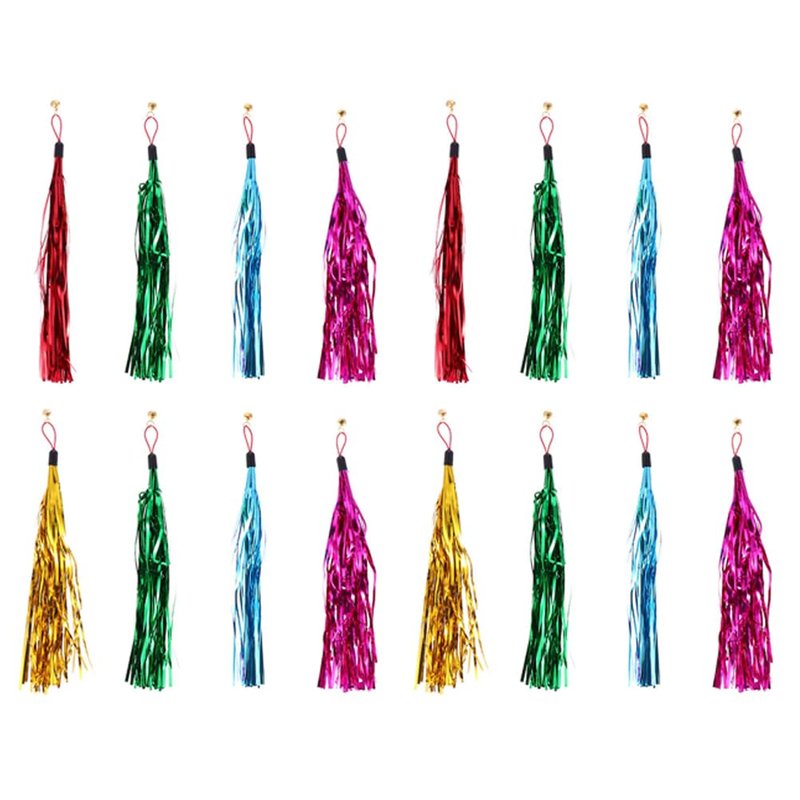 LUOZZY 16 Pcs Cat Teaser Wand Metallic Foil Tassel Cat Wand Toy Replacement with Bell Interactive Catcher Teaser for Pet, Random Color