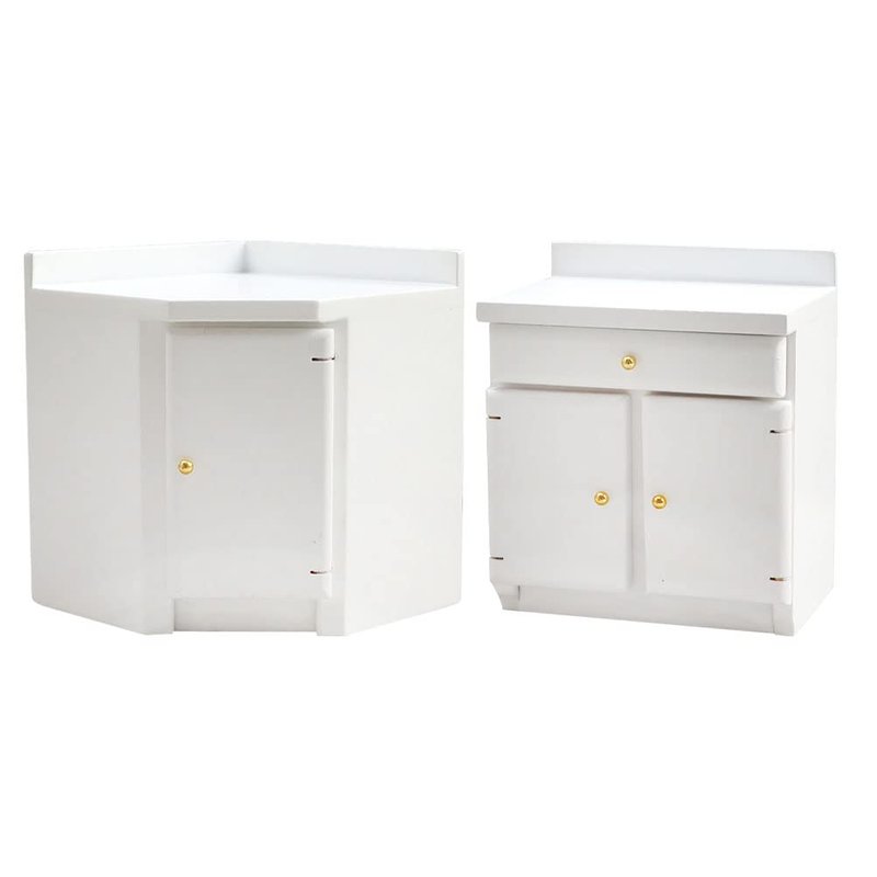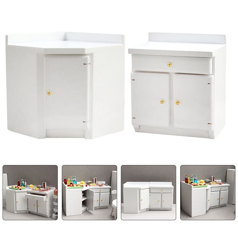 LUOZZY 2pcs Miniature Dollhouse Kitchen Cabinet Wooden Dollhouse Furniture Accessories White Cabinet Cupboard Model