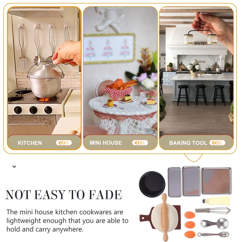 - Quality Materials: Constructed from a combination of resin, wood, and plastic materials, these miniature baking tools are built to last. The materials used and their craftsmanship ensure long-lasting enjoyment for kids' playtime.
