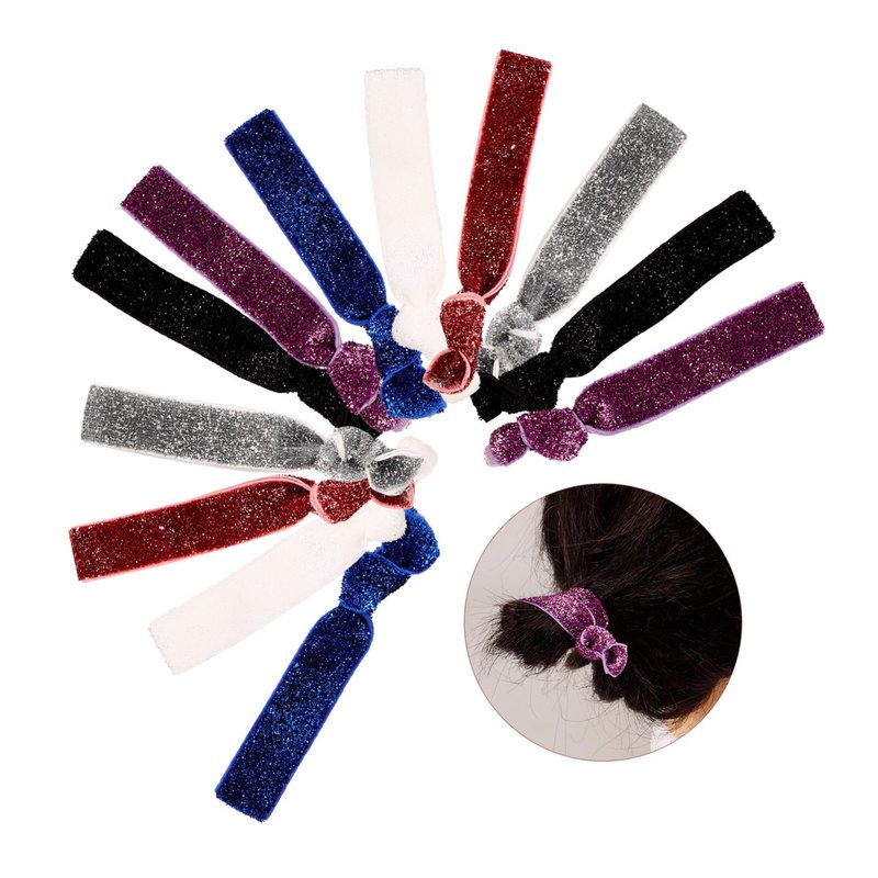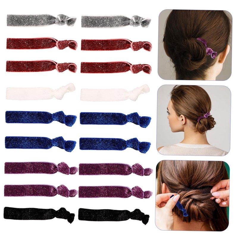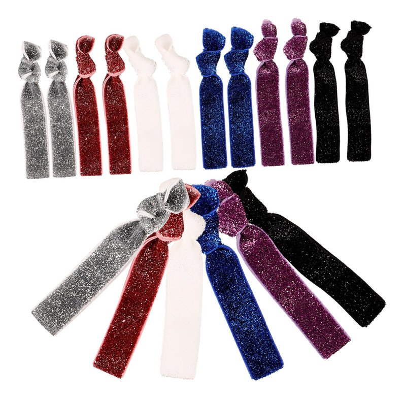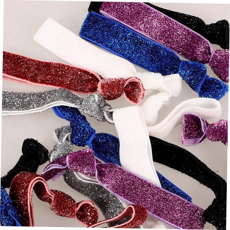 Lurrose 18pcs Glitter Hair Ties No Crease Ponytail Holders Elastic Ribbon Hair Ropes (Assorted Colors)