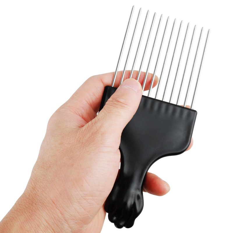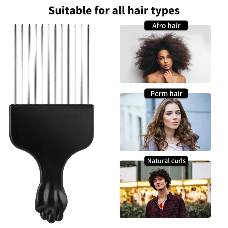 - 【Unique Design】The classic black fist design of the metal hair pick handle is novel in style and easy to hold. Ideal for detangling curly, thick, tangled hair.