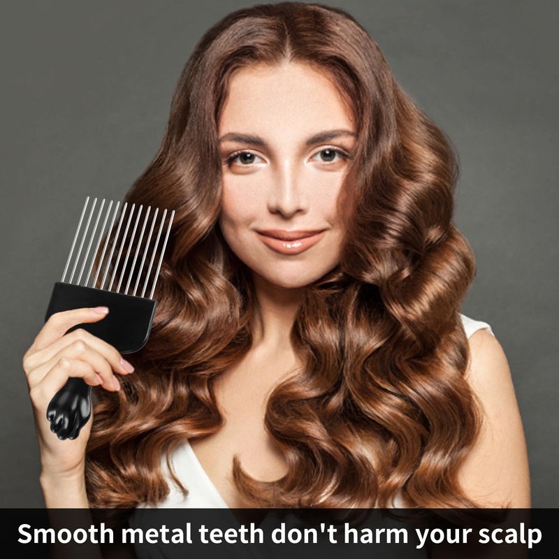 - 【High-quality Material】The afro pick is made of plastic handle and stainless steel teeth, strong and durable, not easy to rust. Stainless steel comb teeth are stronger, not easy to break.
