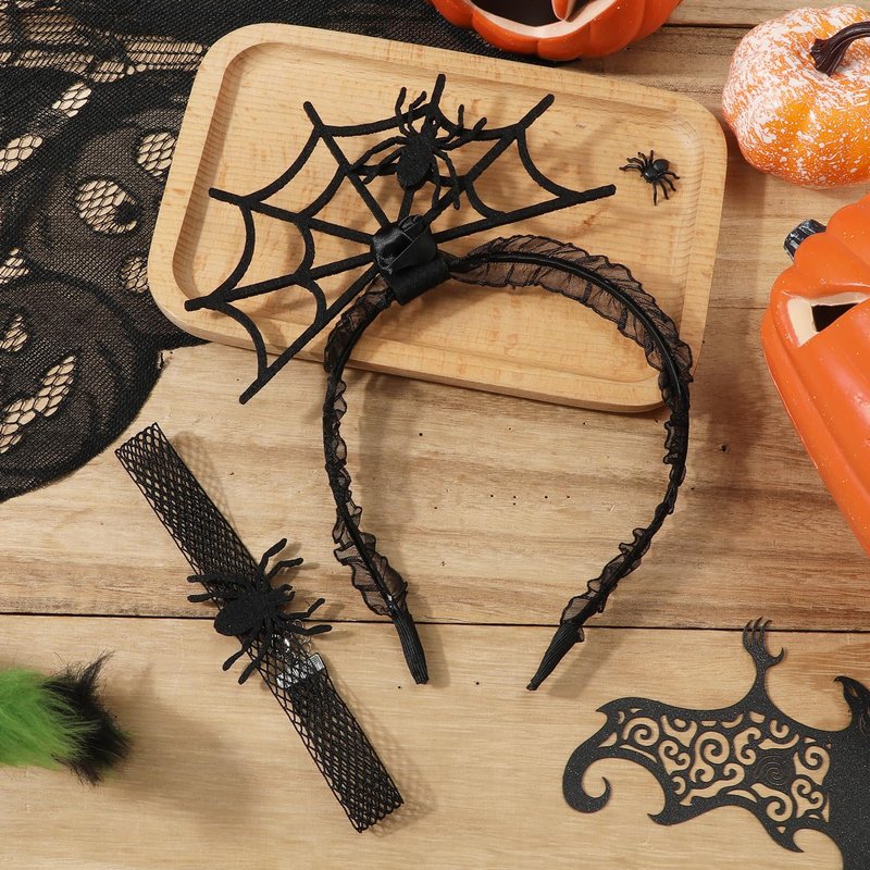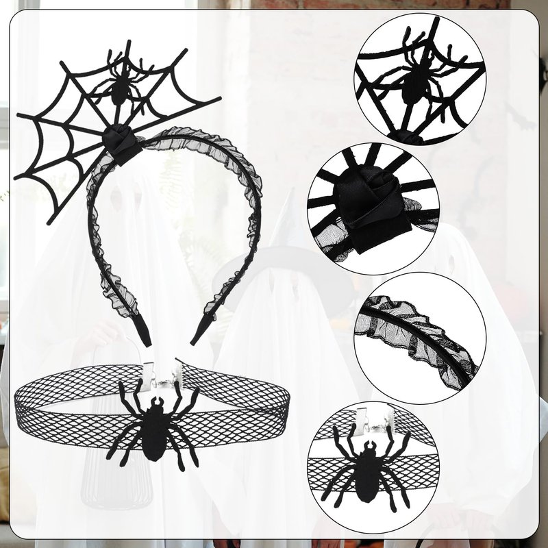 - Well-Designed: The design elements of the Halloween spider headband and necklace are decorated with classic black spider webs and small black spiders, which are very suitable for Halloween theme parties and can make your dress up very eye-catching and charming.