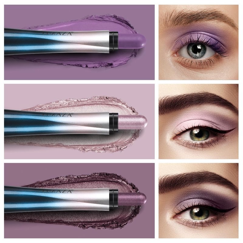 LUXAZA 24H Longwear Cream Eyeshadow Stick,3 PCS Metallic purple Eyeshadow Pencil Crayon Eye Brightener Stick,Metallic Shimmer Eyeshadow Stick Sets,Waterproof Eye Shadow Pencil Eye Makeup