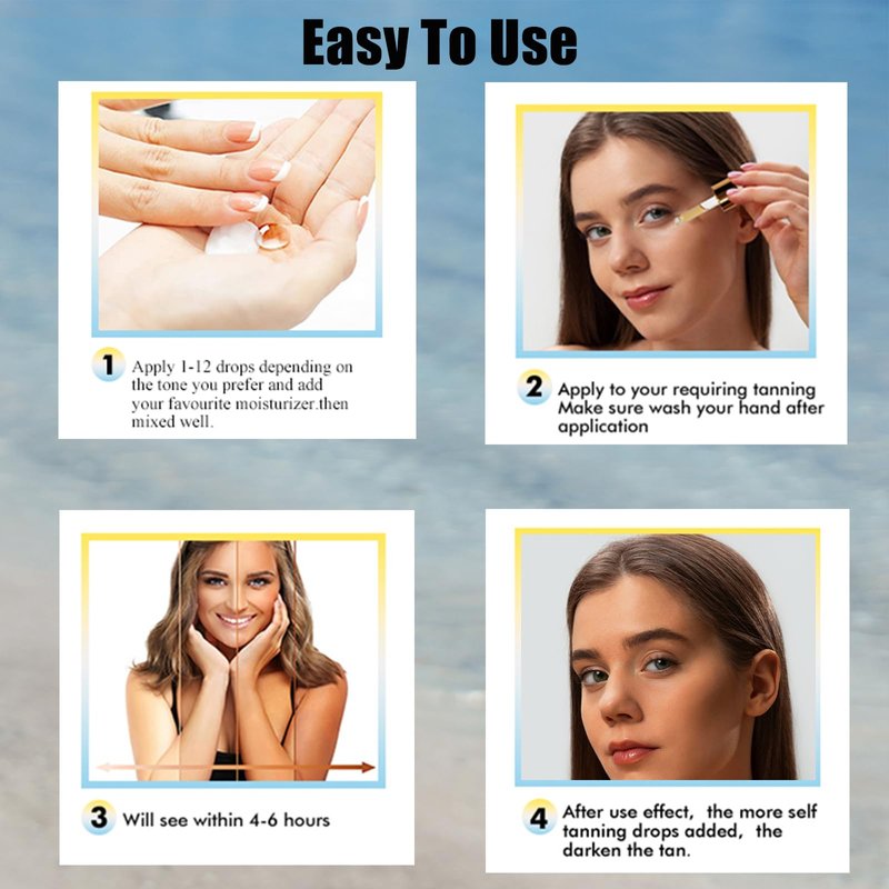 - 【Customizable & Easy to Use】: Just add 1-12 drops to your favorite moisturizer, mix, apply,and perfect your skincare routine. Control your alow—the more drops. the deeper vour tan. Remember to wash your hands after application.