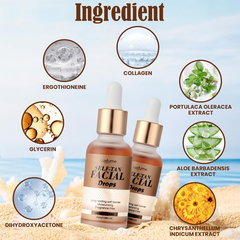 - 【Natural, Anti-Aging Ingredients】: Crafted with organic ingredients like ergothioneine and collagen to help us fight aging. Our self tanner drops aren't just safe-they actively rejuvenate your skin. Perfect for both your face and body.