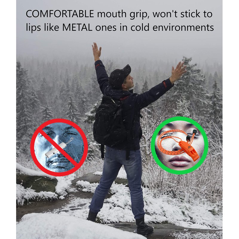 - PEALESS DESIGN means no moving parts, nothing to obstruct sound, and nothing to jam, break or freeze. Lightweight and fail safe nice whistle works well in any conditions with excellent airflow design. Comfortable mouth grip, won't stick to lips like METAL ones in cold environments.