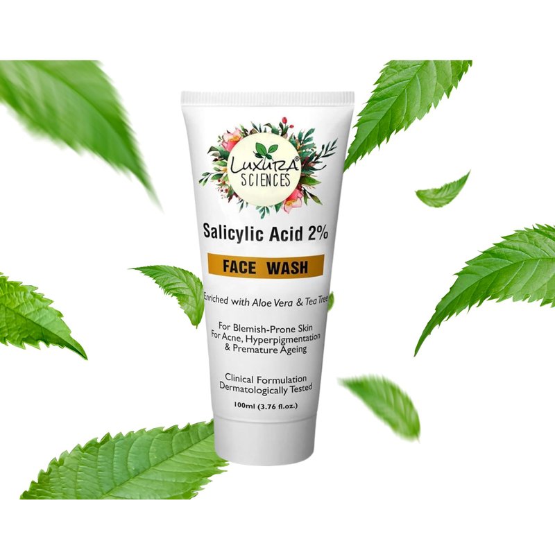 Luxura Sciences 2% Salicylic Acid Anti Acne Gel Face Wash | Fights Acne & Unclog Pores | Controls Excess Oil & Sebum | Tea Tree Infused Facial Cleanser | 3.38 Fl Oz/100ml