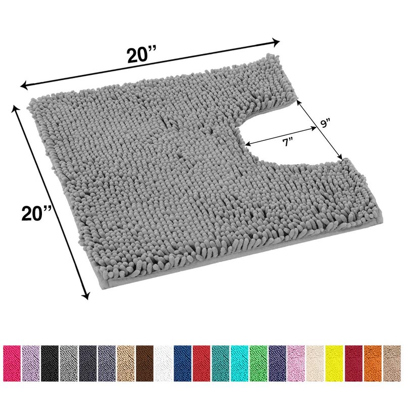LuxUrux Bath Mat - Toilet Rugs u Shaped- Extra-Soft Plush Bath Bathroom Rug,1'' Chenille Microfiber Material, Super Absorbent Shaggy Machine Wash & Dry (20 x 20, Light Grey)