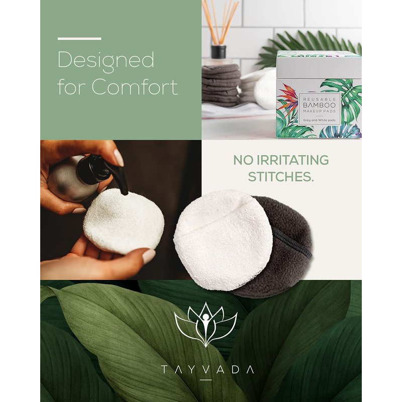 - IT’S TIME TO REPLACE COTTON ROUNDS FOR FACE FOR GOOD! We’re here to help you reduce your impact on the environment. We are always testing for the very best formulas, the most earth-friendly ingredients and the best designs. At Tayvada, you can always expect FULL TRANSPARENCY & THOUGHTFUL DESIGNS. Our makeup remover pads reusable 14 COUNT SET comes in a HIGH QUALITY, GIFTABLE BOX with SUSTAINABLE TISSUE, backed by the Eco-Packaging Alliance. IT’S A PURCHASE YOU’LL FEEL GREAT ABOUT MAKING!