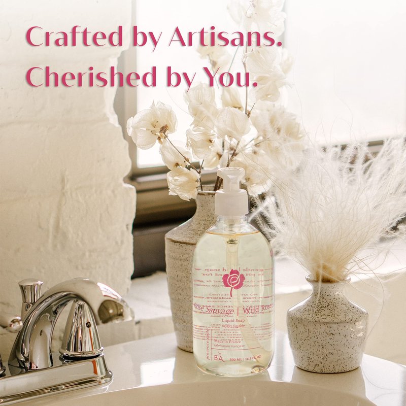 Luxury Hand Soap by Provence Santé 16.9 oz - Liquid Hand Soap for Bathroom, French Soap with Moisturizing with Sweet Almond Oil, Floral Wild Rose Scent - Liquid Soap Bottle with Pump