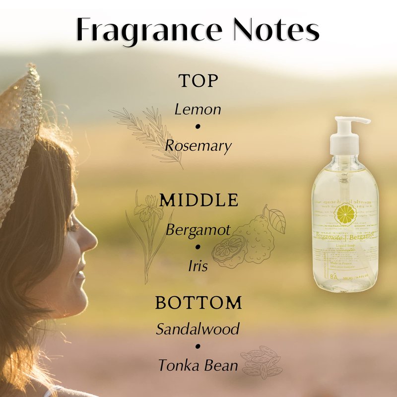 Luxury Hand Soap by Provence Santé 16.9 oz - Liquid Hand Soap for Bathroom, French Soap with Moisturizing with Sweet Almond Oil, Light Citrus Bergamot Scent - Liquid Soap Bottle with Pump