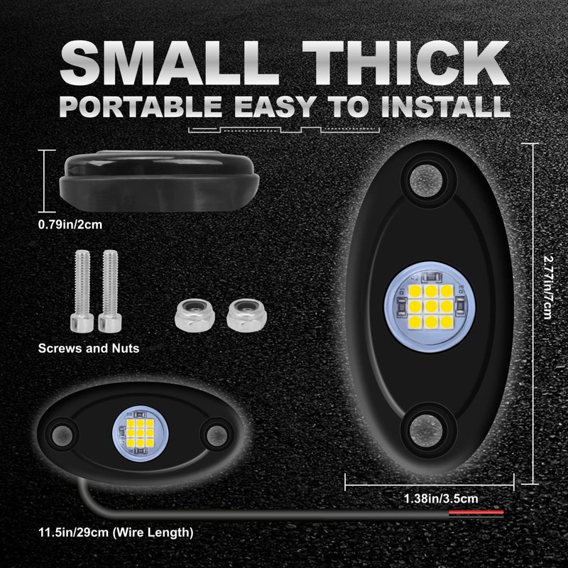 - White led rock light ,Each lamp adopts 9 high-quality LED chips, which can illuminate your chassis in a wider range and make driving safer.