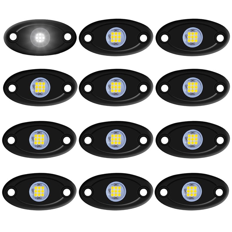 LY8 12 Pods White LED Rock Lights Neon Underglow Light for Car Truck ATV SUV Under Body Glow Light Trail Fender Lighting