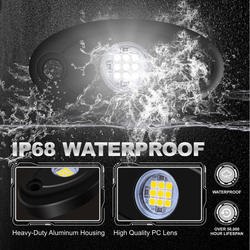 - Rock light white, voltage: 9-16V DC; Up to 50000 hours of life! Led rock light will improve your driving at night, and it will also be more beautiful and bright.