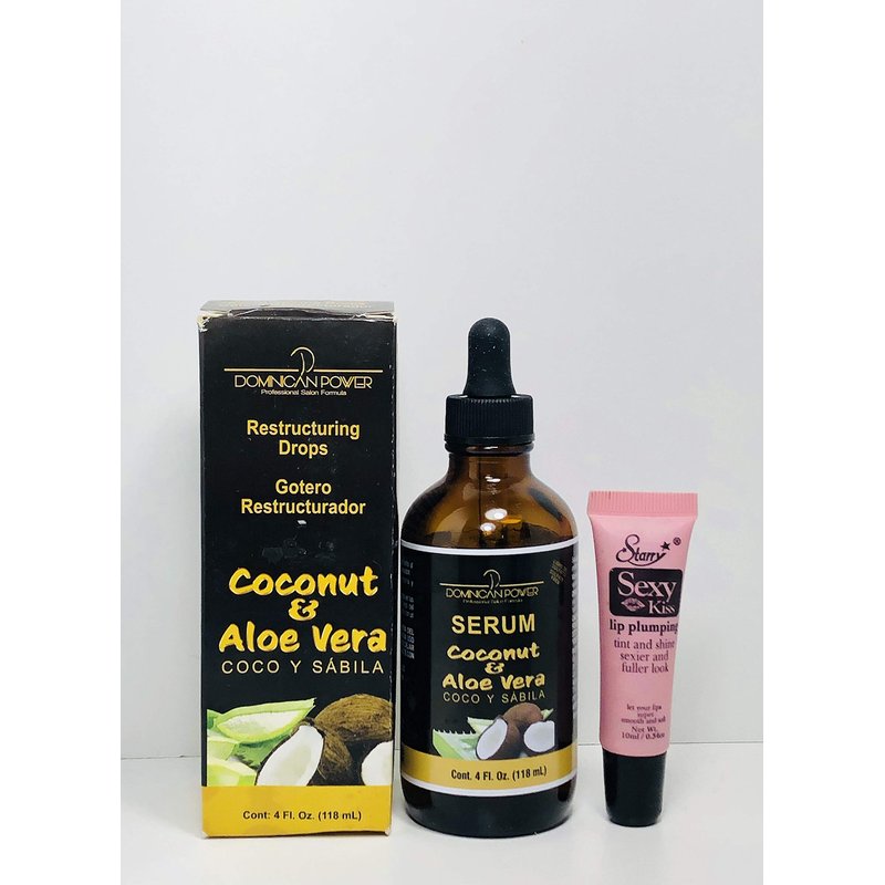 LYHB Dominican Power Coconut & Aloe Vera Restructuring Drops 118ml4 fl oz - Free Starry Lip Plumping Gloss 10 ml, 120ml4 Fl Oz