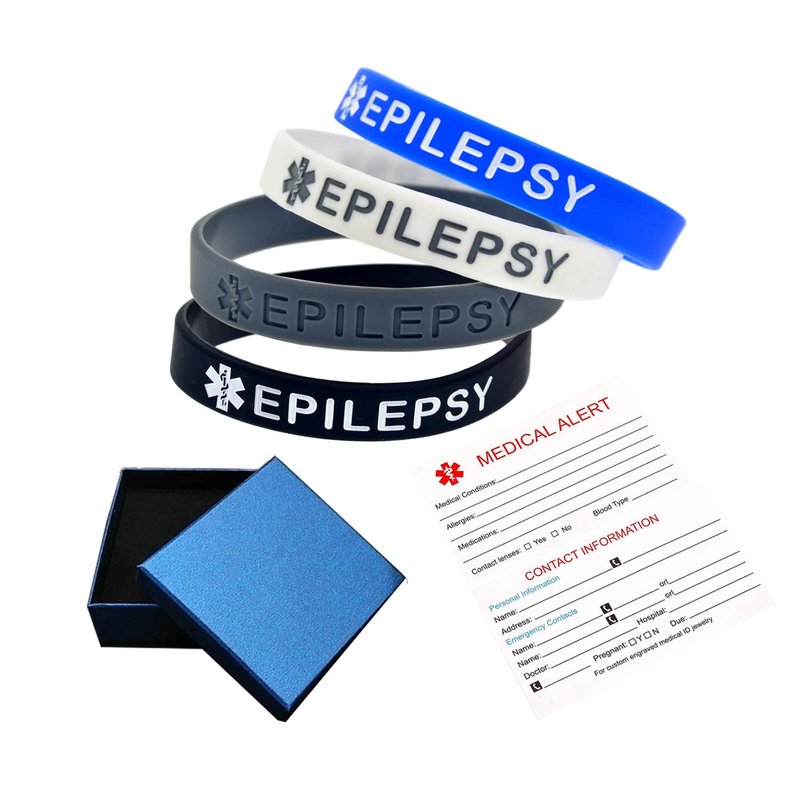 - Each bracelet is printed with the words "Epilepsy".Corrosion engraving, the font is very clear, durable enough for years of active wear, will not fade or wear off