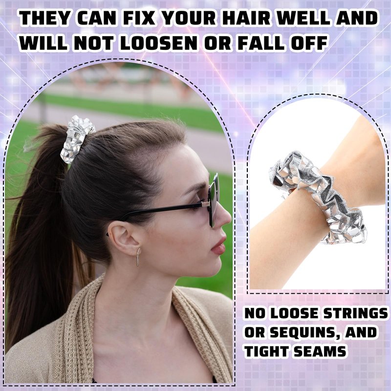 - Take on Events with Versatile Disco Sequin Hair Scrunchies: from parties, concerts, and music festivals to daily casual wear, our disco style sequin hair accessories seamlessly fit into many occasions; Their unique design coupled with the mirrored light reflection makes them suitable for nightclubs, Halloween, and Christmas celebrations while adding an engaging charm to your favorite hairstyles
