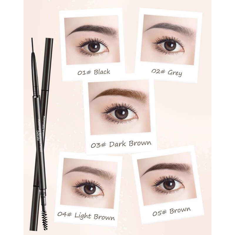 - ULTRA FINE DUAL-ENDED EYEBROW PENCIL - The product includes 4Pcs eyebrow pencil and dual-ended brow razor, they are five classical Pop colors available, 360 Degree rotation design, retractable eyebrow pencil body, adopt waterproof ultra-fine mechanical pencil refill, goes on smoothly, the color can stay all day long.