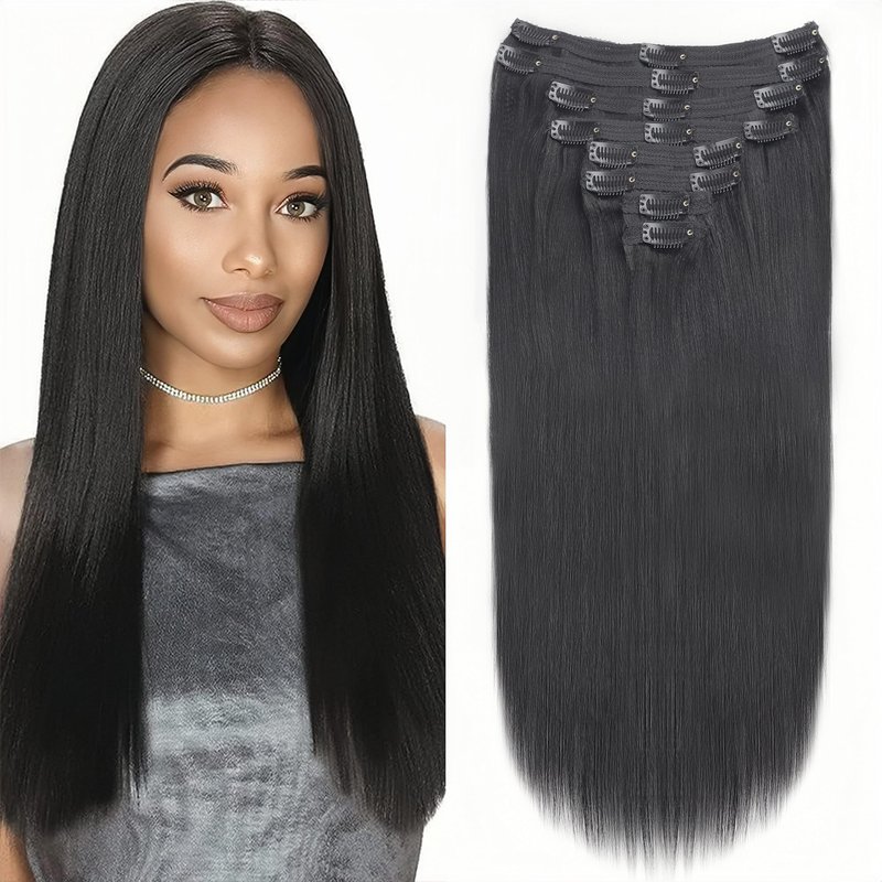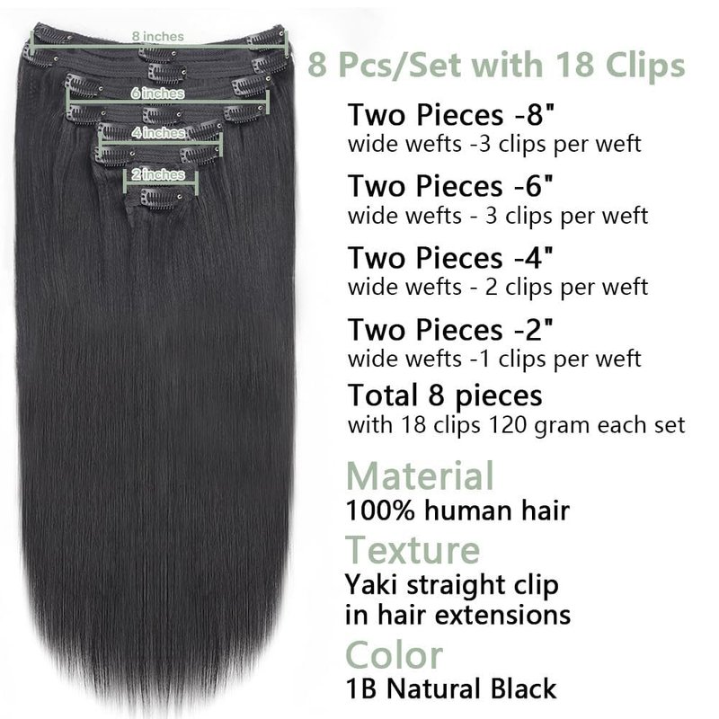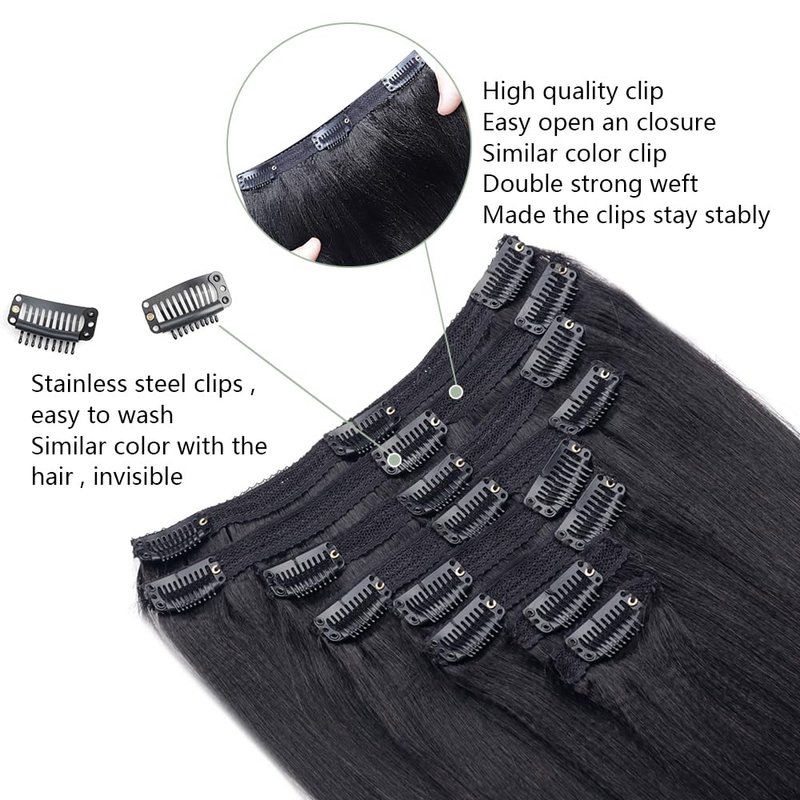 Yaki Straight clip in hair extensions real human hair 8 pcs 120g