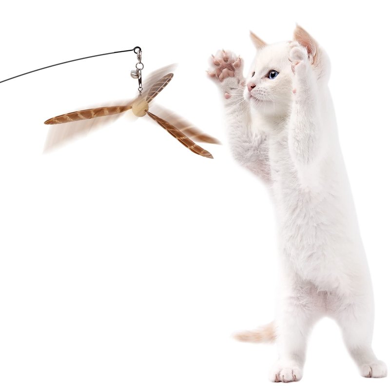 - Great Gift for Cats: Swing this cat wand toy gently, the metal bell sound fascinates adult cats and kittens to play with this cat toy, the high-stretch steel wire drives the feathers to whirl, stimulate the cat's hunting instinct, helps kitty exercise their body, relieve loneliness and boredom.