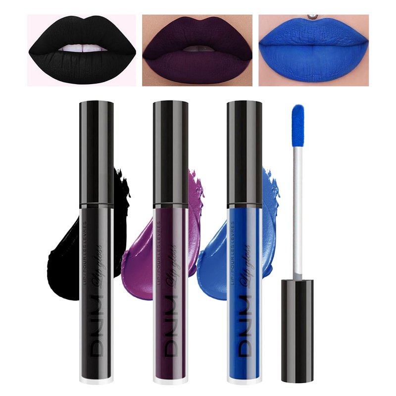 LZXLUKGIR Black Blue Dark Purple Lipstick Halloween,3PCS Halloween Lipstick Set,Velvet Matte Liquid Lipstick,Long Lasting Waterproof Lip Stain,Nonstick Cup Smudge Proof Lip Gloss for Women