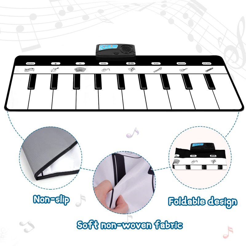 - 【Best Gift for Kids】This piano mat for kids can play, record and replay their own music. In the process of playing, it can help them gain the basic knowledge of music and stimulate their imagination and listening- speaking ability. It is highly entertaining even for babies. The kids musical instruments is one of the most suitable birthday presents and music toys for kids aged 1-5.