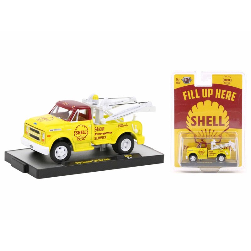 Brand new 1/64 scale diecast car model of 1970 Chevy C60 Tow Truck Yellow with Red Top and Yellow Interior "Shell Oil" Limited Edition to 7800 pieces Worldwide die cast model car by M2 31500-HS45