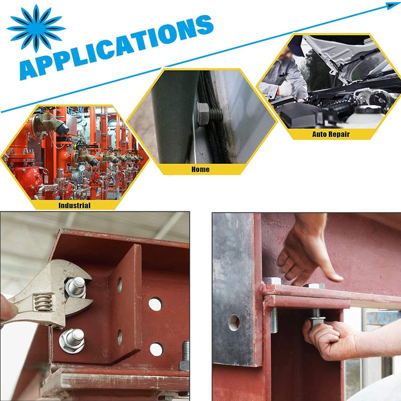 - ☛Widely Application: There is a wide flange at one end of the flange nut, which increases the bearing surface of the nut and is not easy to loosen. It can be used to replace the hexagonal nut and shock-proof gasket. It is widely used in automobiles, motorcycles, generators, home appliances and other projects.