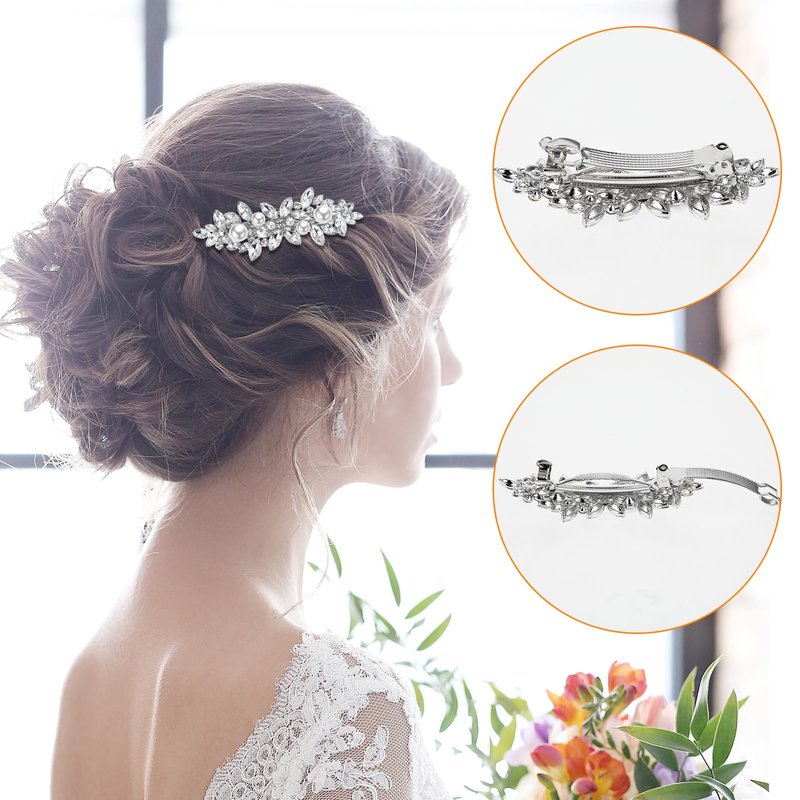 - 【SIze and Component】: You will receive 2 pieces silver French hairpins in different sizes, the pearl and white diamond styles are 2.95*1.02*0.87inch, and the full diamond size is 2.95*1.02*0.71inch. The quantity is sufficient to meet your daily needs and replacement requirements