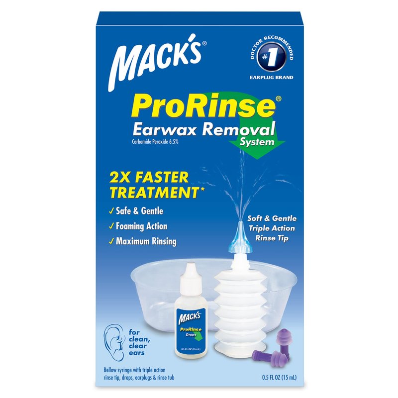 Mack's ProRinse Ear Wax Removal System - 0.5 FL OZ Ear Drops, Ear Plugs, Ear Wash Tub & Ear Syringe with Triple-Action Rinse Tip