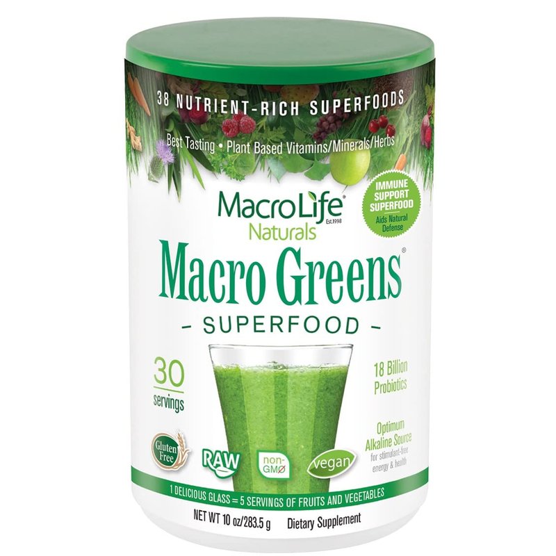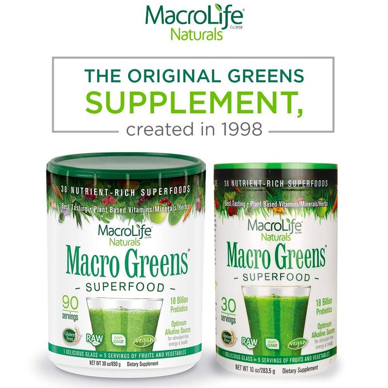 MacroLife Naturals Macro Greens Powder 38 Superfood Probiotic Antioxidant Enzyme & Herbal Supplement Immunity Energy Cleanse - Non-GMO Vegan Gluten-Free Dairy-Free - 10oz (30 Servings)