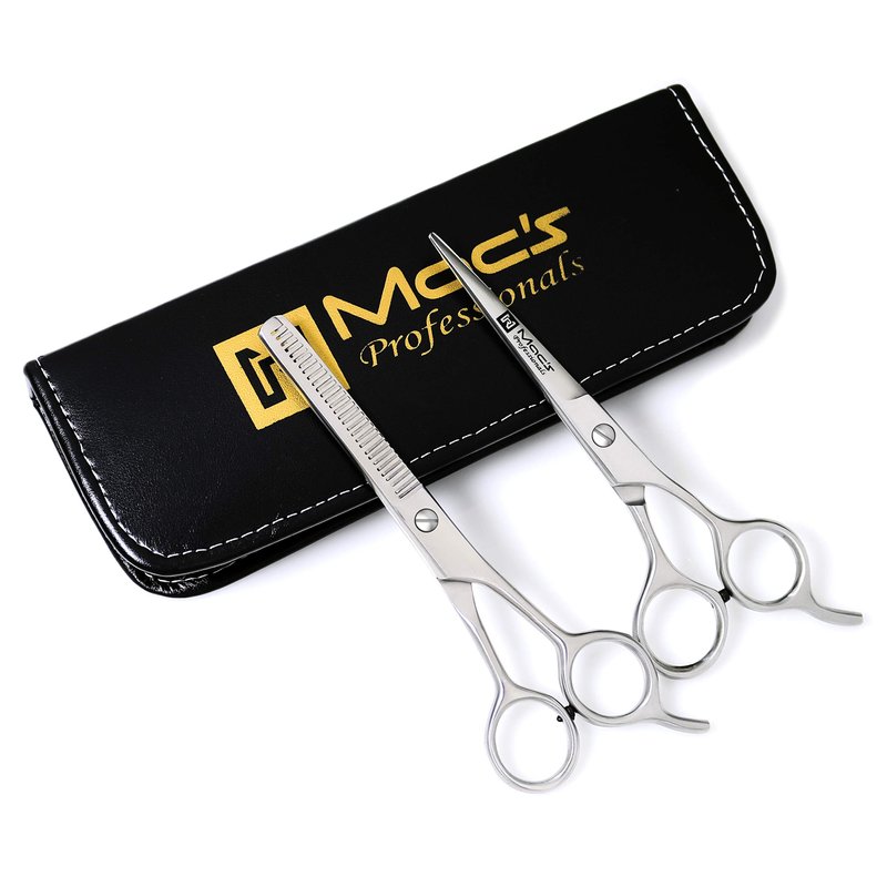 Macs Razor Products Professional Barber Scissor Hair Cutting Scissors 6" and Texturizing /Thinning Shears 6" Scissors Set with Free Black Bonded Leather Case-206
