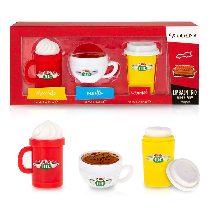 - Central Perk Lip Balms – Soothe and moisturize dry lips with the most delicious flavors of chocolate, vanilla, and caramel! Moreover, in their adorable Central Perk packaging, you can feel as though you are part of the Friends cast, sipping and soothing at the local coffee shop!