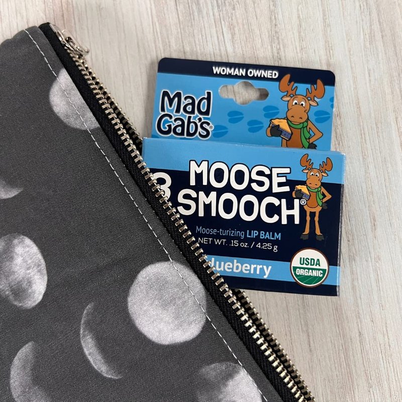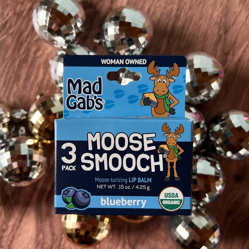 Mad Gab’s Organic Moose Smooch Lip Balm makes people happy. Not just because it’s fun to say—but because it works! Olive oil is derived from pressing the oil out of a whole olive fruit. It's rich in monounsaturated fatty acids—healthy fats that pose a variety of health and cosmetic benefits—and also contains skin-loving antioxidants. Beeswax is processed by beekeepers after they harvest honey by utilizing the wax seal on each honeycomb bees produce. At harvest time the cappings are cut off using a hot knife. The beekeeper melts them down and refines them to make into products. Lip balm for kids, adults—we like to say from age 0-100! Simple, organic formula that hydrates chapped lips. Chapped lips are no fun—and everyone can help prevent them by drinking plenty of water, eating healthy food, and using lip products made with pure ingredients that help break the cycle of “apply and re-apply”