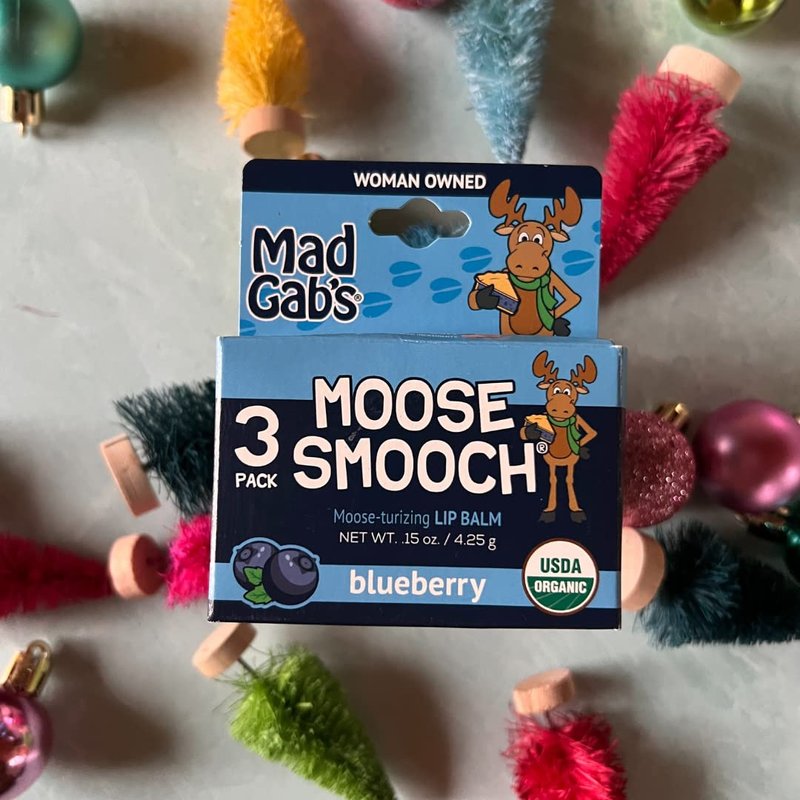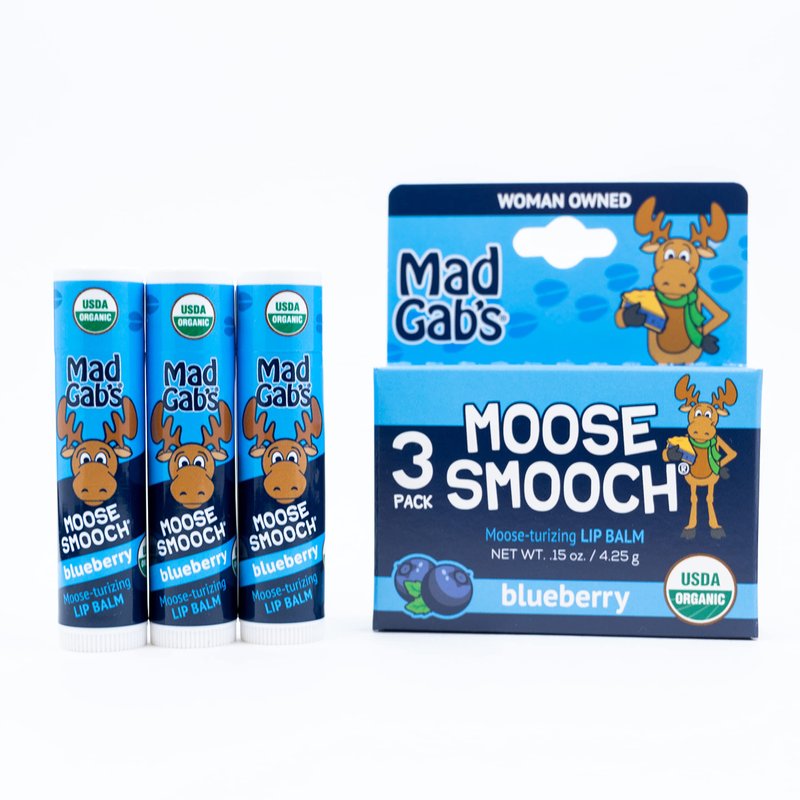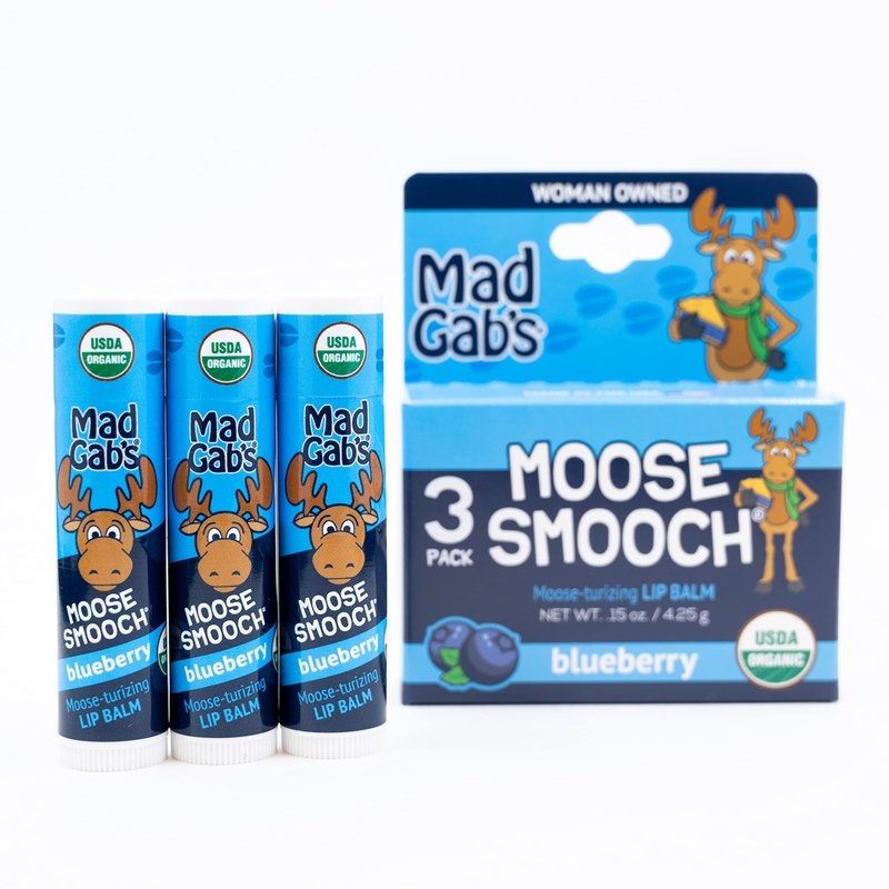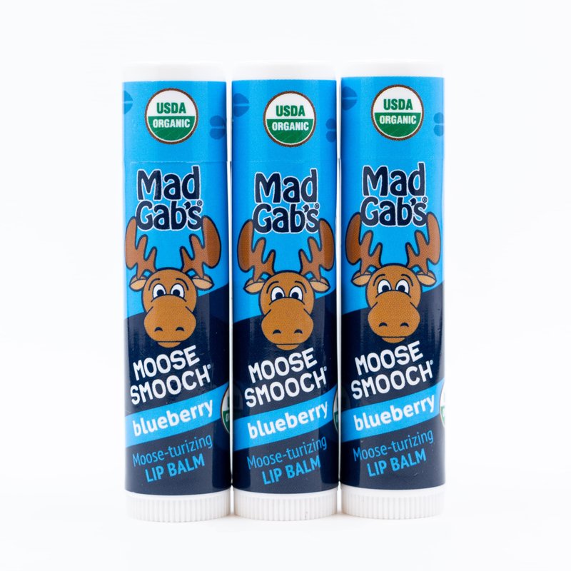 Mad Gab's Moose Smooch Blueberry Lip Balm | Moisturizing and Certified Organic | Made with Organic Olive Oil, Beeswax, and Vitamin E | Gift Set (3 Pack)