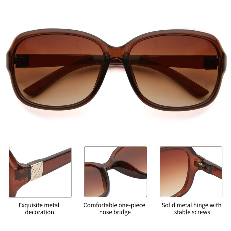 - 【2 Pairs Gift Package】- 2 pairs women's sunglasses is including convenient glasses pouch and quality cleaning cloth. The elegant design metal trim on the temple shine your style out.
