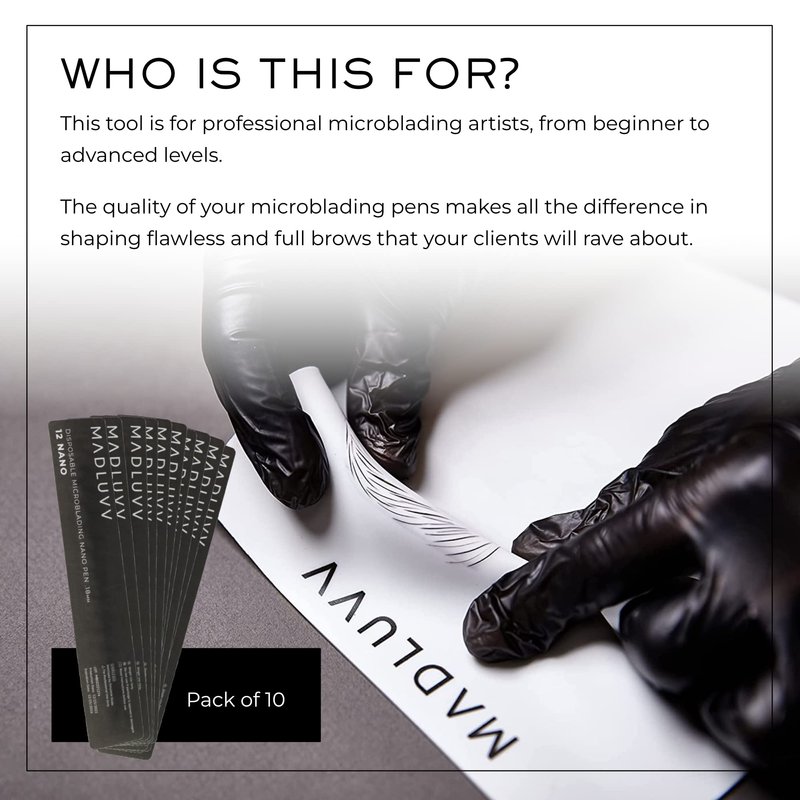 - 🌟 #1 MICROBLADE NANO PENS FOR YOUR THRIVING SUCCESS! If you are looking for the best professional microblading supplies, you will love our Madluvv Nano pens. They are great for beginners and advanced artists to give your clients symmetrical and explicit brows to show off. Don't be surprised if random strangers come running into your studio begging for an appointment after hearing your client’s rave about you and their gorgeous brows! It’s all about using the right tools…