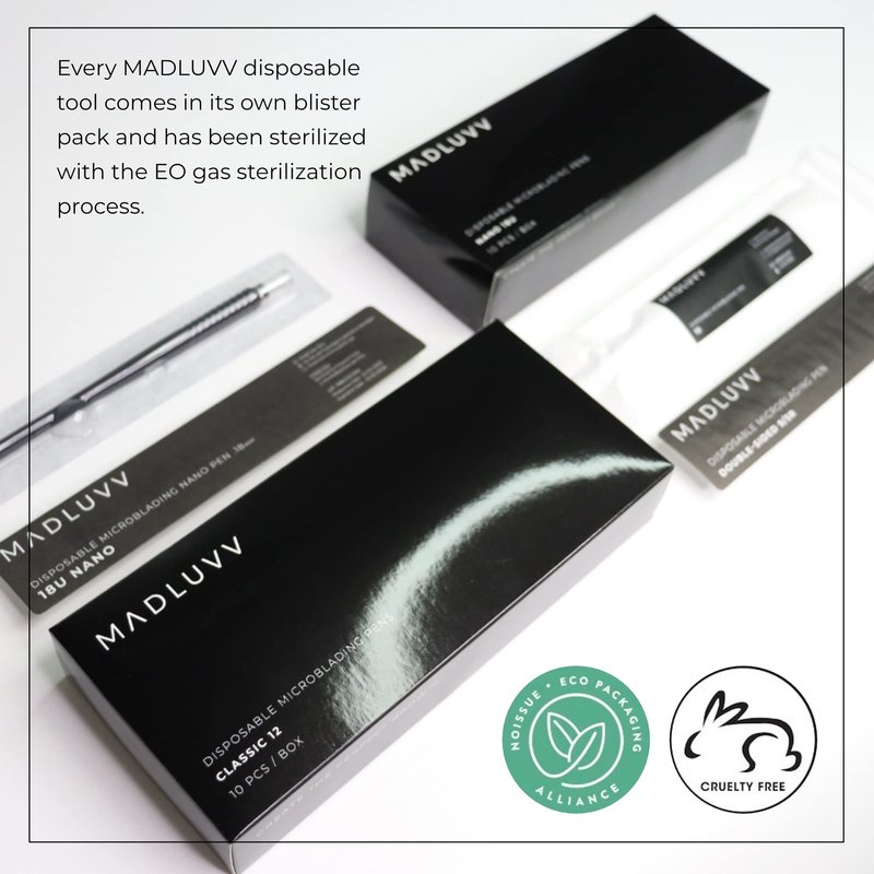 - 🌟 “MY LIFE ISN’T PERFECT— BUT MY BROWS ARE!” Providing our amazing microblading tattoo artists with the highest quality microblade pens is our highest priority. Get ready to fall in love when your 10 Pack of Madluvv pens arrive at your door in sterilized blister packs (EO gas sterilization). You can click the yellow “Add to Cart” Button today with total confidence, knowing that you are getting the best supplies for microblade professionals!
