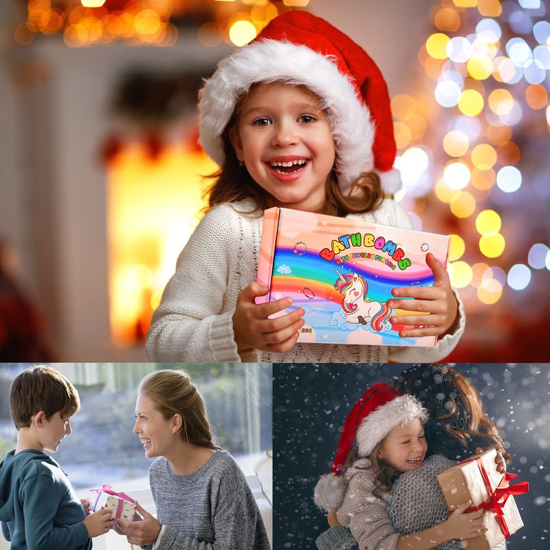 Kids Bath bombs with surprise inside is perfect choice for birthday gifts for 3 4 5 6 7 8 9 10 11 12 year old girls and teen girls.Perfect bath stuff matching with unicorn sleepwear, girls bath towel, unicorn bathrobe for girls. Ideal for Kids Easter basket stuffers for girls. Bath bombs for kids with toys inside is also great as Easter bath bombs gifts, valentine gifts or Christmas gifts for family members, classmates, friends, neighbors,etc.