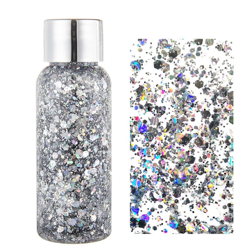 MAEPEOR Chunky Face Body Glitter Gel 19 Colors Mermaid Sequins Holographic Body Glitter Gel Long-Lasting Festival Makeup Glitter Paint for Face Body Hair Nails (30g, #001 Silver)