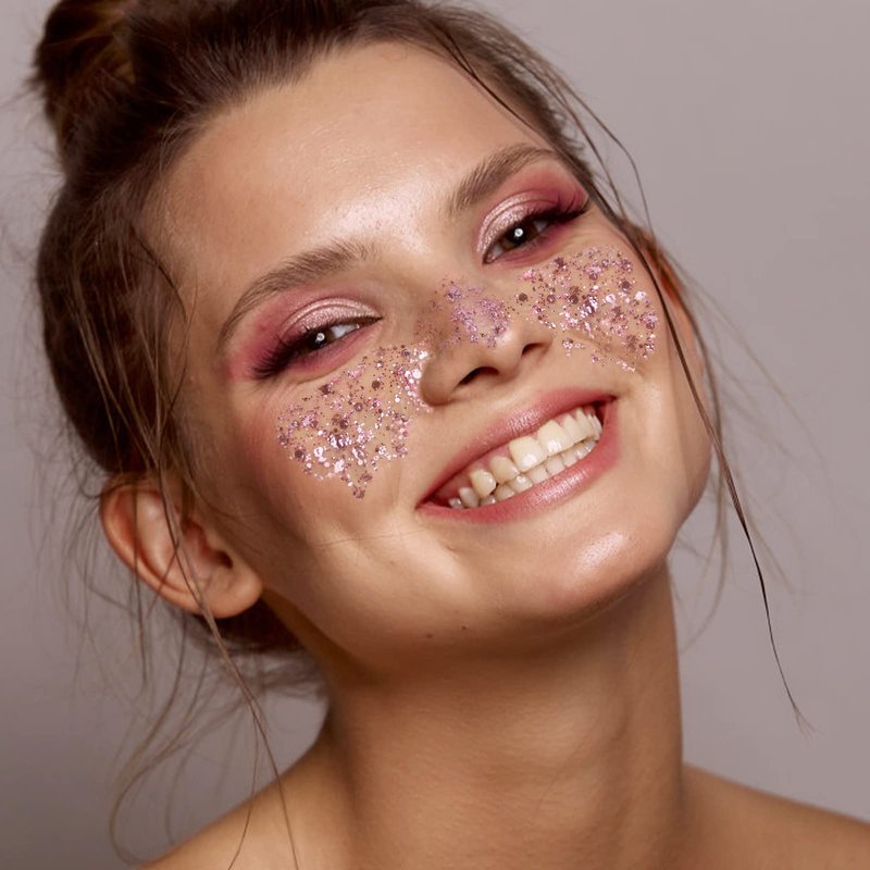 - ✨【Shiny Glitter Gel】This is a body and face sequin with gel, suitable for all skin. There are small stars, small moons and hexagonal sequins, which are very shiny and gorgeous, making your makeup more attractive and eye-catching.