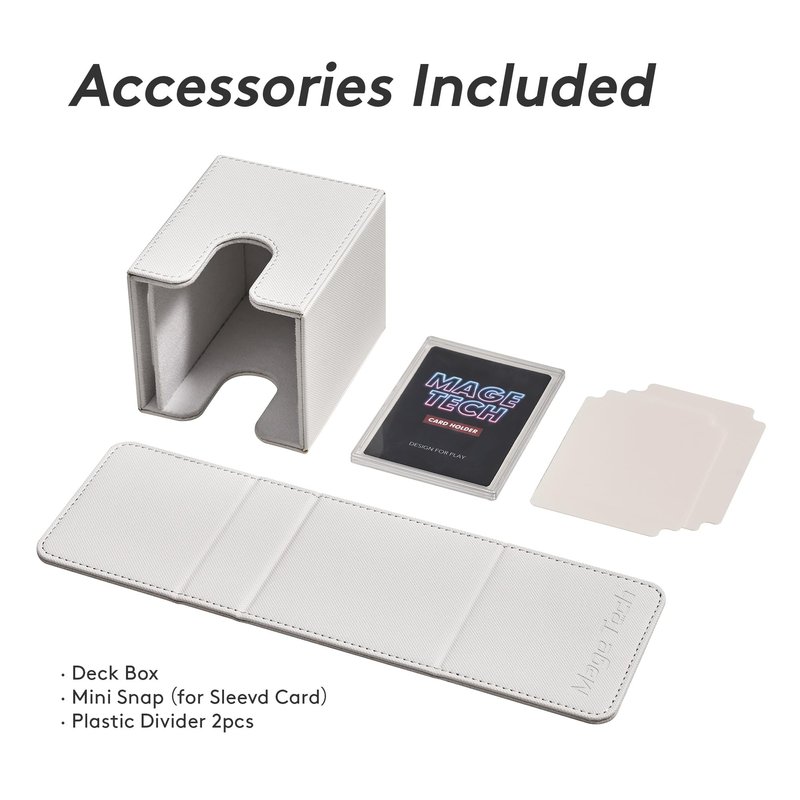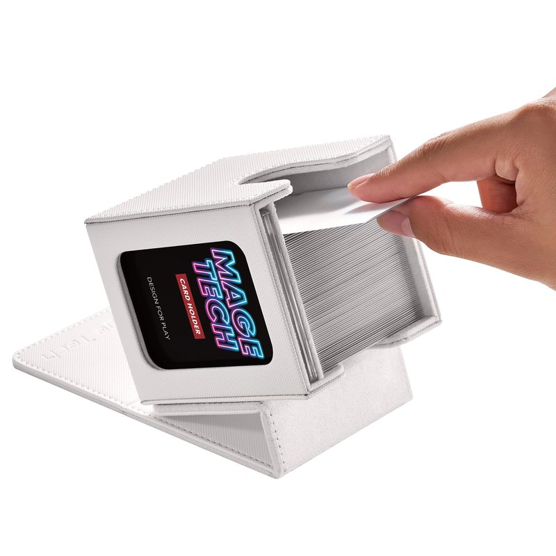 Mage Tech Commander Deck Box Lite - Card Display with Mini Snap Card Holder & Removable Cover, Fits 100+ Single-Sleeved Cards, Ideal for MTG, PTCG, OPCG, SWU & More (White)