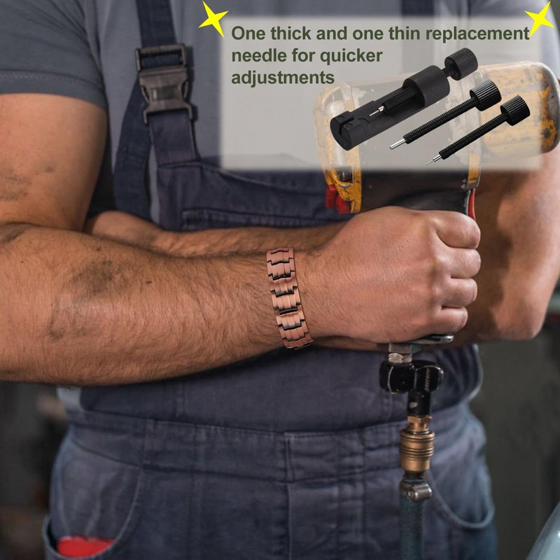 **TIMELESS DESIGN: Crafted with the purest solid copper, this bracelet ensures you receive the full advantages of copper. It is hypoallergenic, lead and nickel-free, with a robust clasp for secure wear. **PERFECT GIFT: Our magnetic bracelet boasts a classic design suitable for all occasions, making it a cherished accessory for years to come. Surprise your loved ones with a luxurious magnetic bracelet that combines style and function. Packaged in an elegant box, it's an ideal gift for friends and family. **MATERIAL: Pure Copper PACKAGE INCLUDES: **1 x Bracelet **1 x Sizing Tool **1 x Jewelry Box **1 x Cleaning Cloth **1 x User Manual Elevate your well-being and style with our magnetic bracelet.