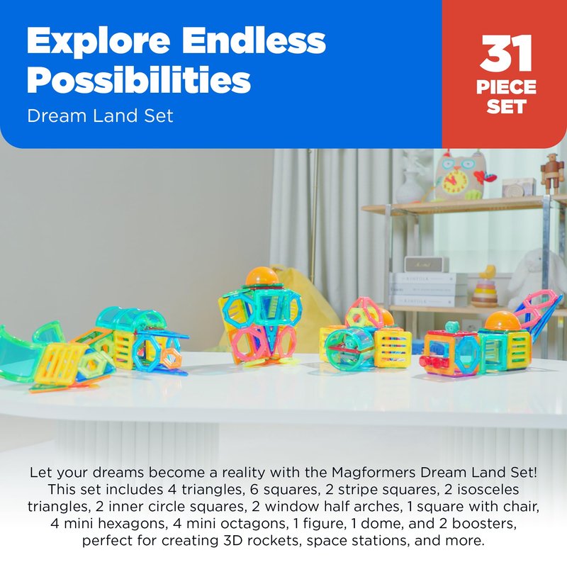 Magformers Dream Land 31-Piece Set | Magnetic Tiles Building Blocks, Educational Kit, STEM Toy Set | Magnetic Building Tiles for Kids to Develop Problem-Solving Abilities and Shape Recognition