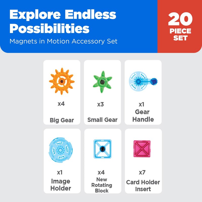 Magformers Magnets in Motion Accessory (20-pieces) Set Magnetic Building Blocks, Educational Magnetic Tiles Kit , Magnetic Construction STEM gear Toy Set