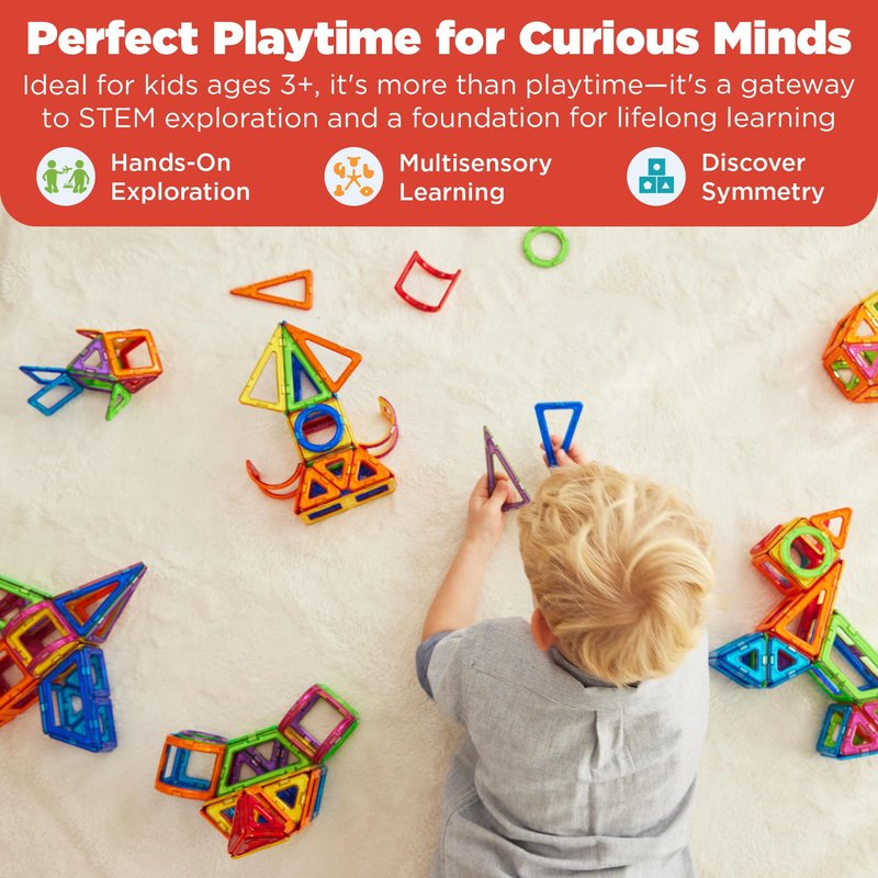 - PERFECT FOR GROWING MINDS: Watch young minds flourish as they explore, create and experiment with possibilities. These magnetic building tiles for kids boost self-esteem and encourage independent thinking by bringing creations to life in imaginative play.