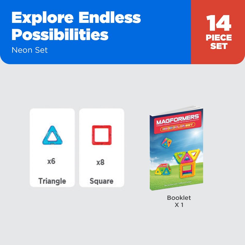 Magformers Neon 14PC Set | Magnetic Tiles Building Blocks, Educational STEM Toy Set | Magnetic Building Tiles for Kids to Develop Problem-Solving Abilities and Shape Recognition